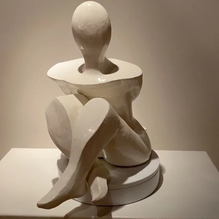 I am a sculptor in clay and a painter. I was born in Paris and moved to Des Moines in 2003, prior to which I experienced a breadth of cultures all over the world. I am self-taught. The human figure has always captivated me. After decades of acrylic portraits, I decided to challenge myself to the new medium of ceramic and fell in love with sculpture. In a way, I wanted to understand sculpture to move beyond it. But volumes are in constant movement, so the challenge is to arrest the figure and see it in 3D, because then I see it for the first time. And as soon as I have given permanence to what keeps evolving, I need to go back and explore the dimension that still escapes me, the negative space. Which is where printmaking and painting allow me to freeze shadows. You could say that all my work is an attempt to translate emotions into form and line. Perhaps sculpture is not the form that fills space, but how the form opens space in relationship to it, including in the mind of the viewer.