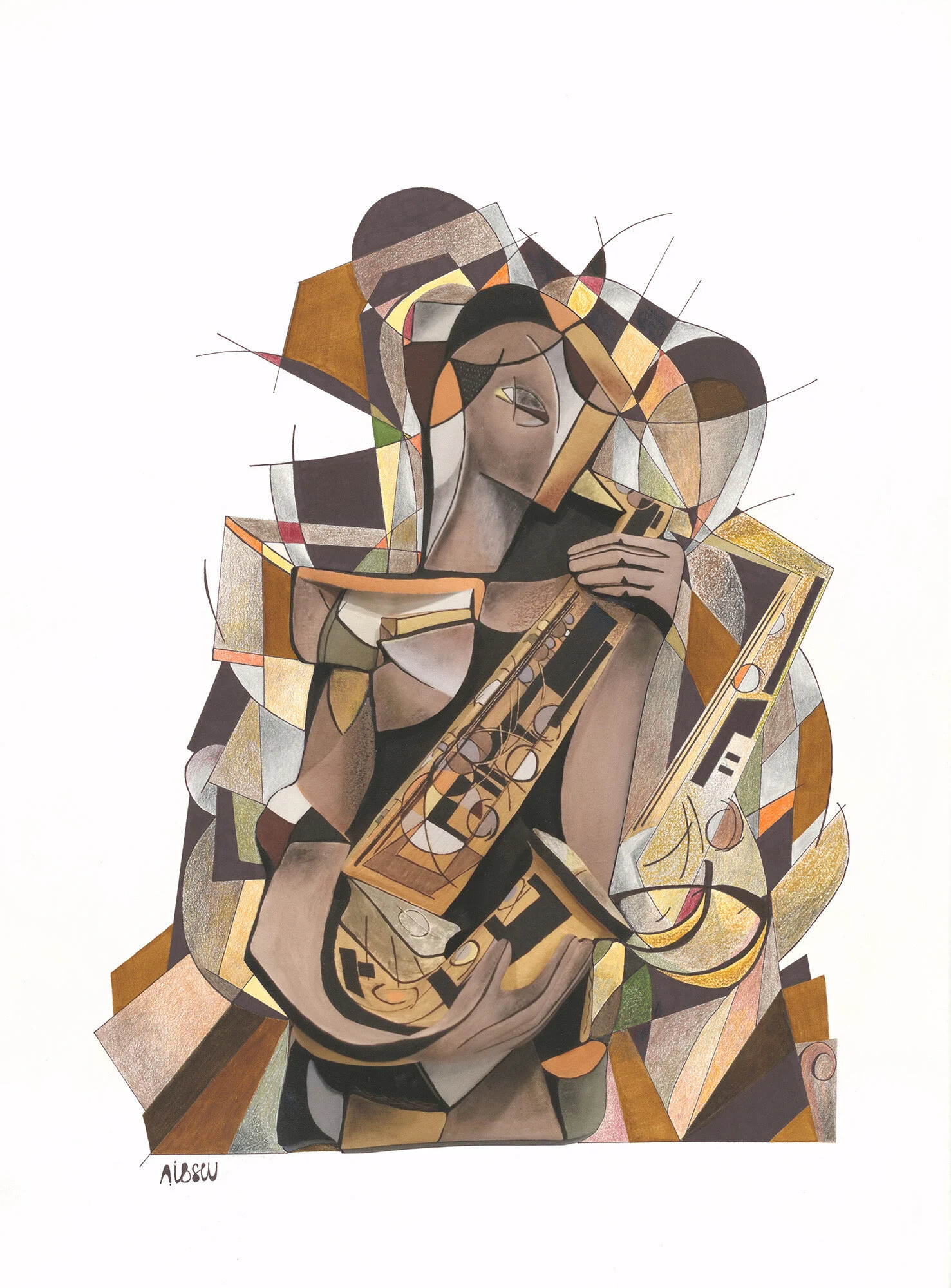 The Saxophone Player Mixed media painting, 30"Hx20"W