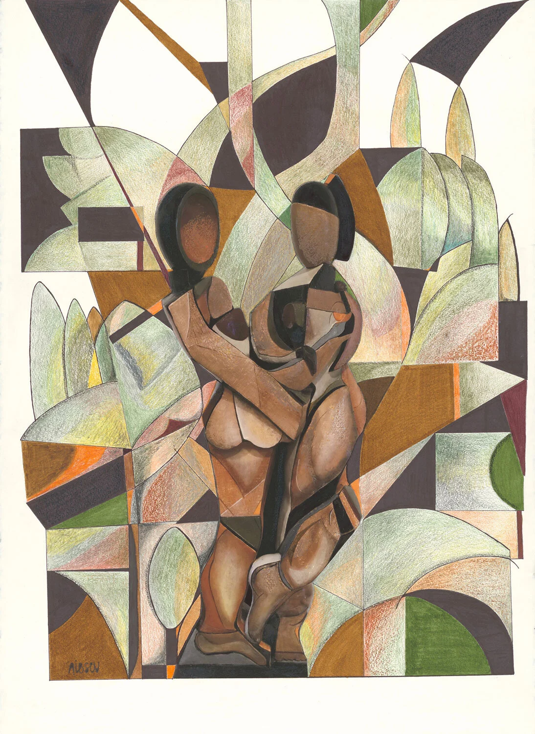 The Lovers Mixed media painting, 30"Hx20"W
